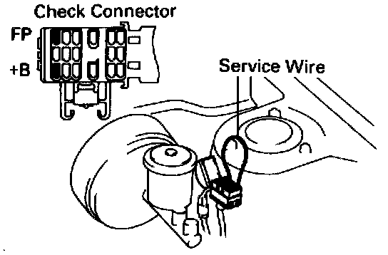 b. Using a service wire, short terminals +B and FP of the check connector.