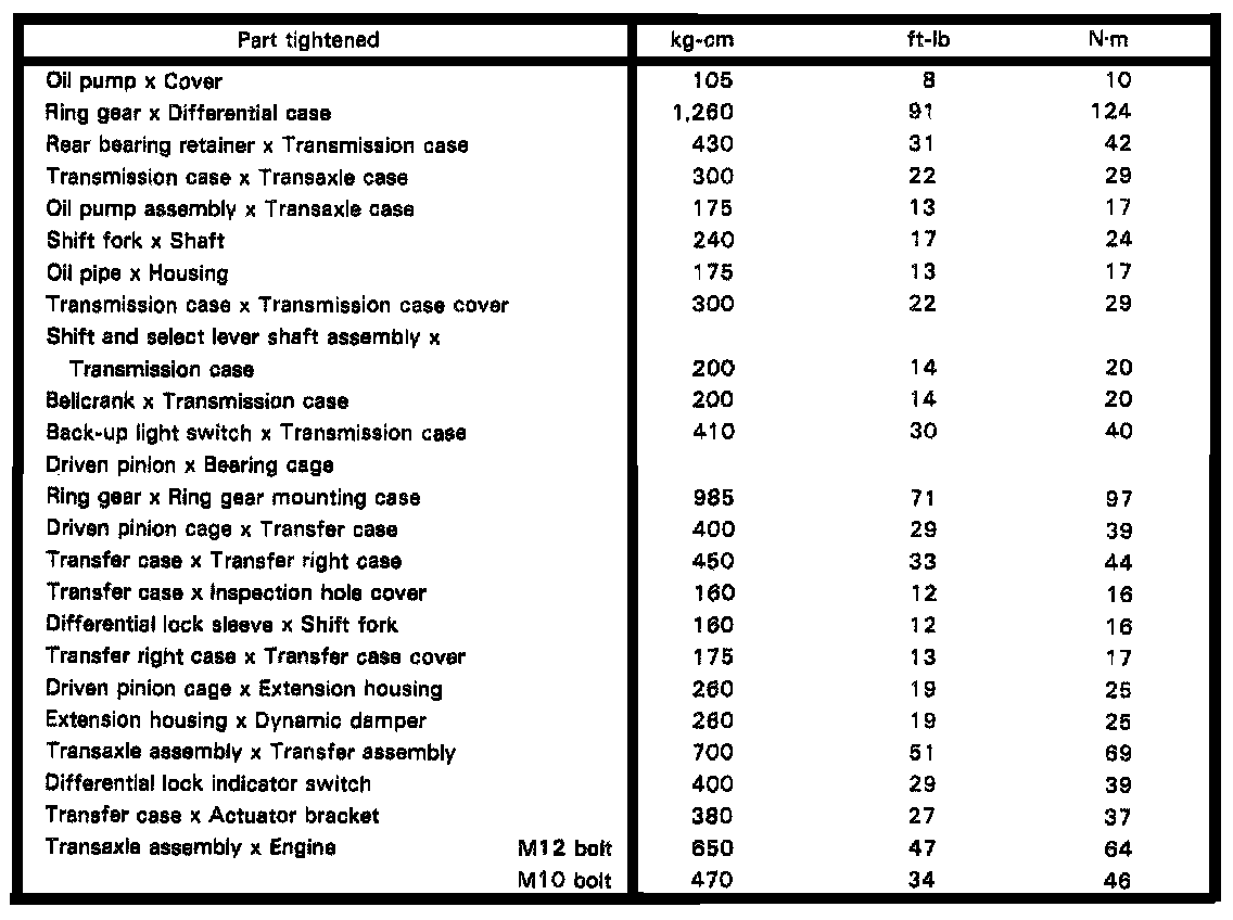 E56F5 5-spd M/T, Transmission/Transfer/Differential Torque: