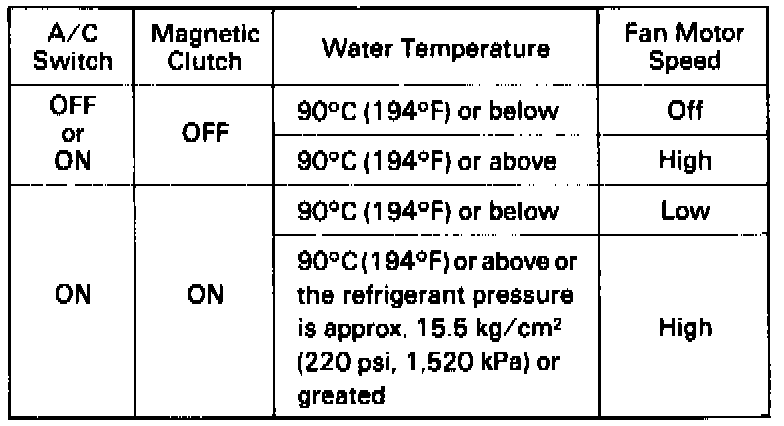 NOTE: The fan motors operate at two speeds depending on the water temperature and the A/C switch.
