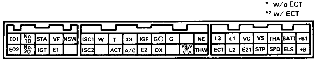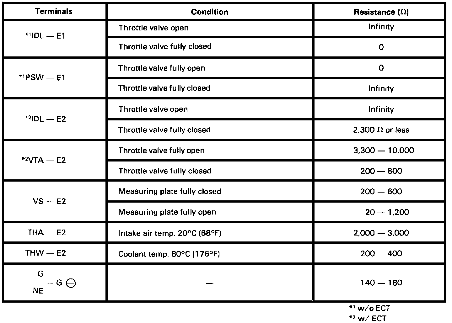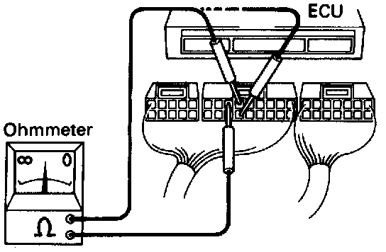 - Disconnect the connectors from the ECU. Measure the resistance at each terminal.