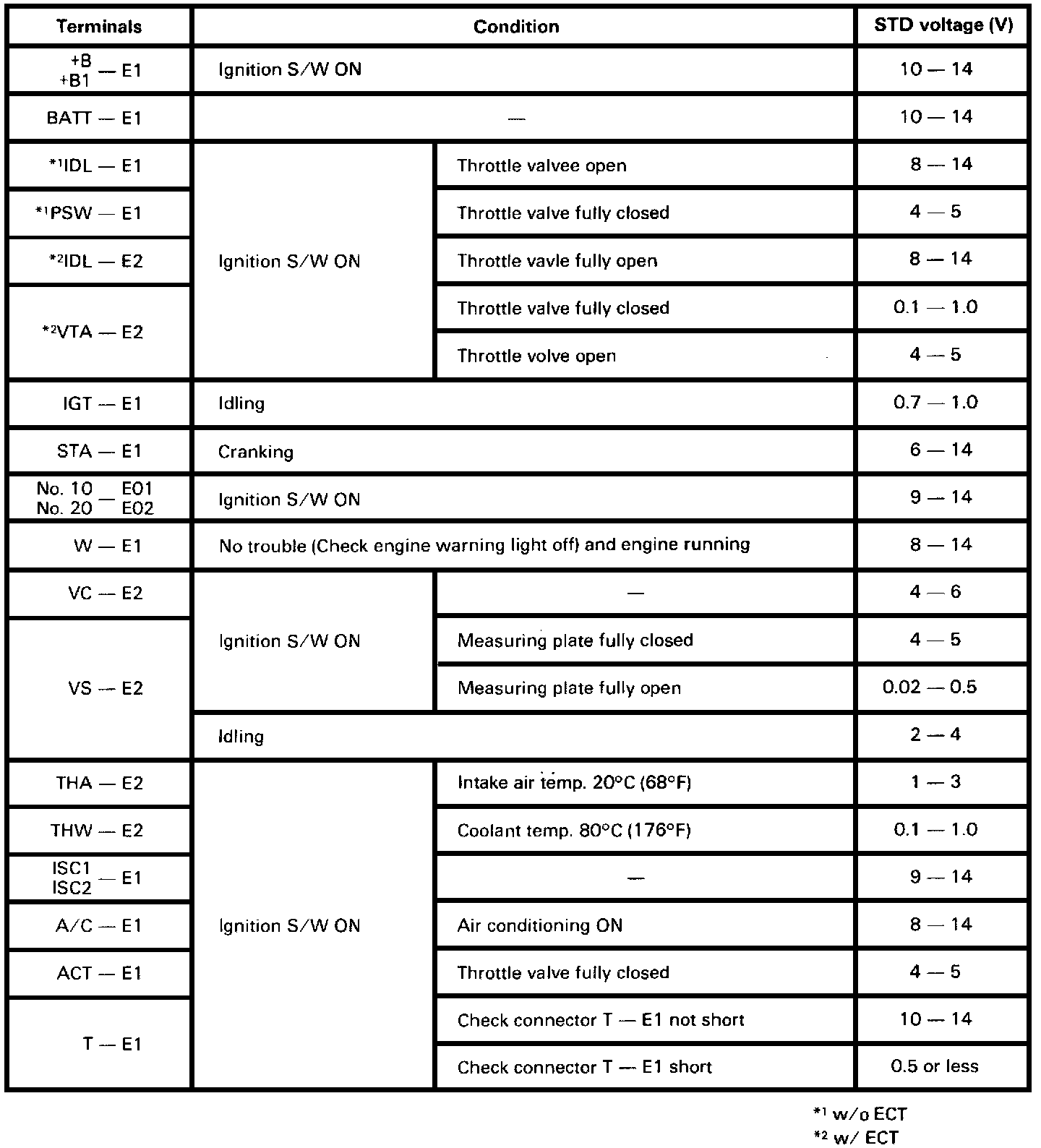 NOTE: The EFI circuit can be checked by measuring the and voltage at the wiring connectors of the ECU.