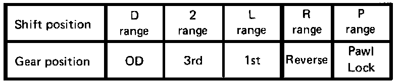Check that the shift and gear positions correspond with the table. If the L, 2 and D range gear positions are difficult to distinguish, do not perform the following road test.