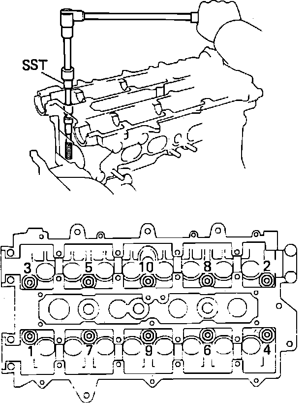Fig. 8 Cylinder Head Bolt Tightening Sequence.:
