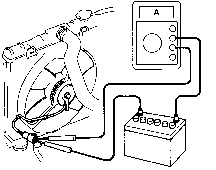 (a) Connect battery and ammeter to the fan motor connector.