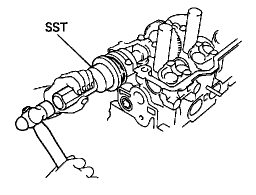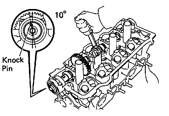 15. Set the knock pin of the intake cam at 10° BTDC of cam angle as shown.