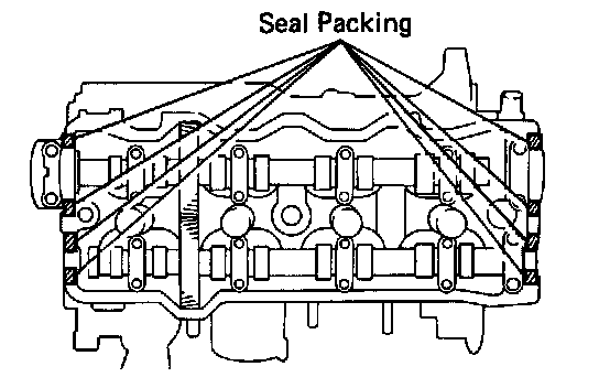 24. Apply seal packing, part No. 08826-00080 or equivalent, to the cylinder head as shown in the image above.