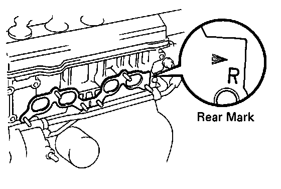 45. Place the new gasket so that the rear mark is towards the back as shown.