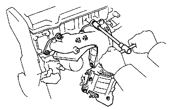 47. Install the catalytic converter brace with the two bolts and two nuts.