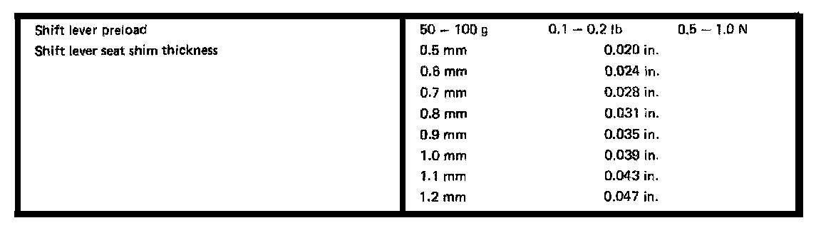 S53 5-spd M/T, Shift Lever Shim Thickness: