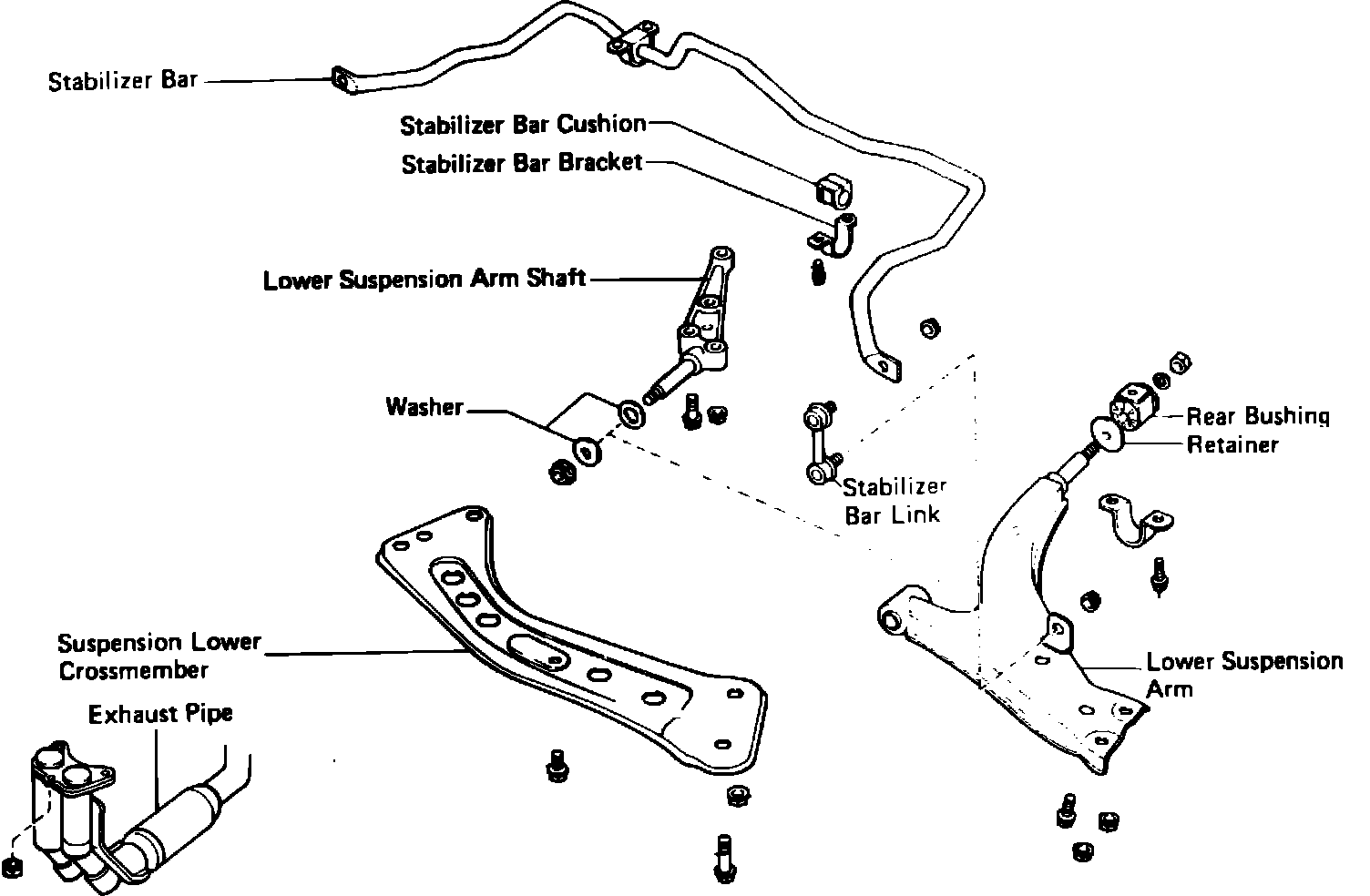 c. Remove attaching bolt and nut, then the lower suspension arm and lower arm shaft.