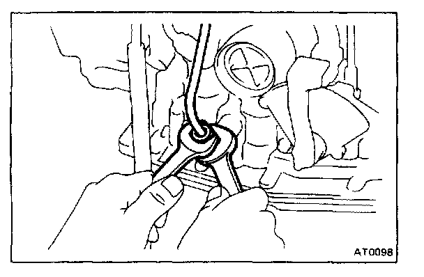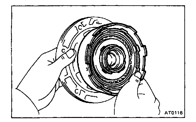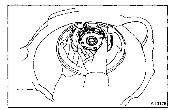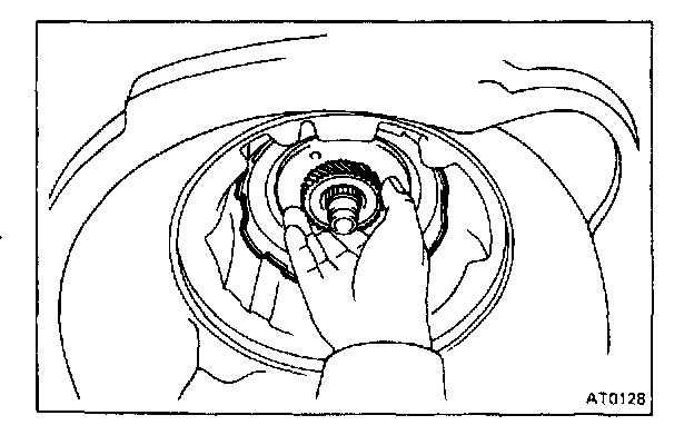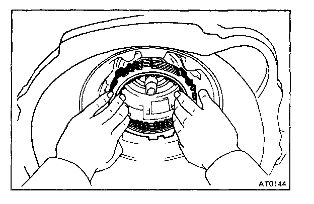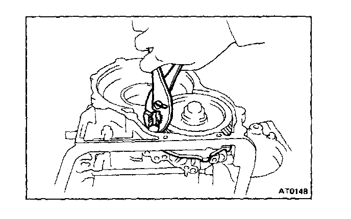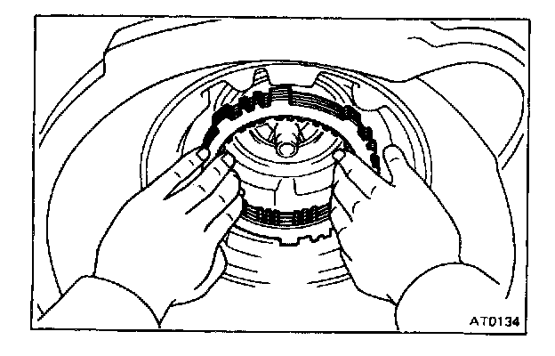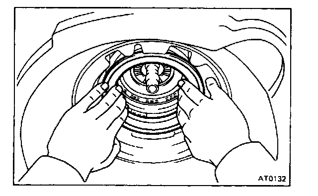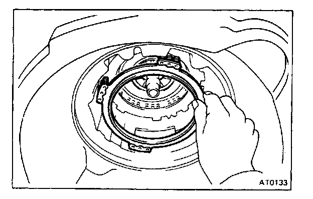 CAUTION: Push the 2nd coast brake band into the case, being careful not to catch it on the direct clutch drum.