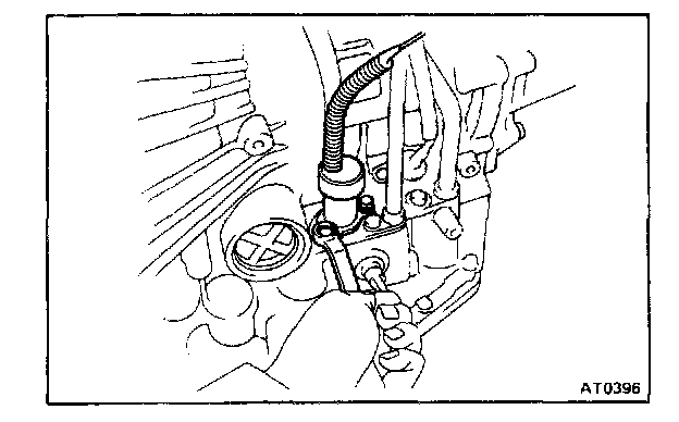 b. Remove the two bolts and solenoid.
