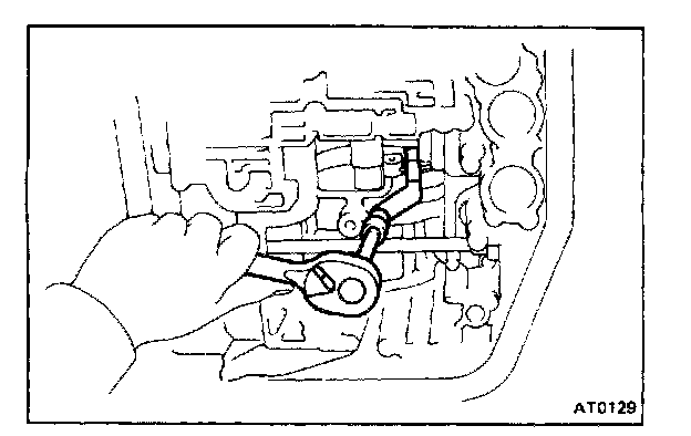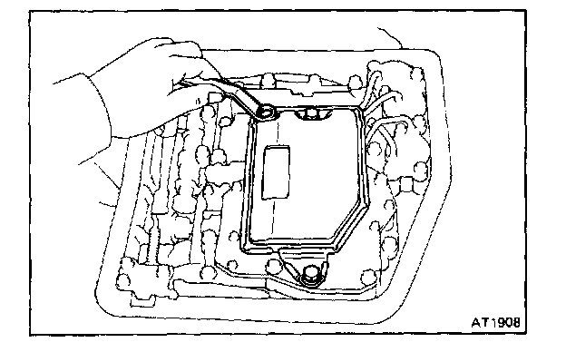 CAUTION: Do not turn the transmission over as this will contaminate the valve body with foreign material in the bottom of the pan.