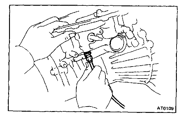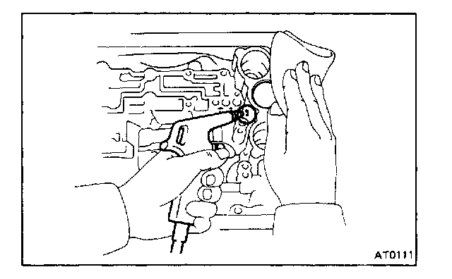 NOTE: Hold the piston so it does not slant and then blow with the gun slightly away from the oil hole.