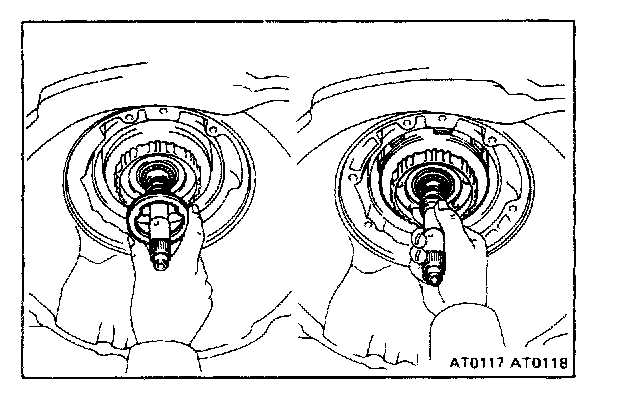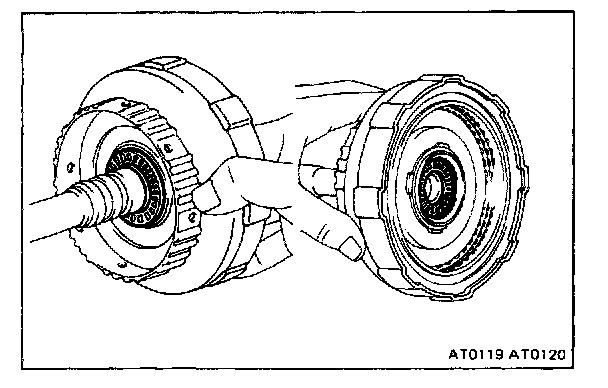 While holding the input shaft, grasp the pump stator shaft and pull the oil pump and direct clutch together out the transmission case.