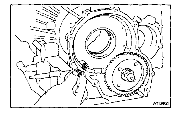 a. Push the pin with a small screwdriver and remove it from the bolt hole of the oil pump mounting.