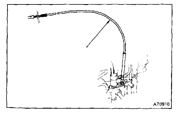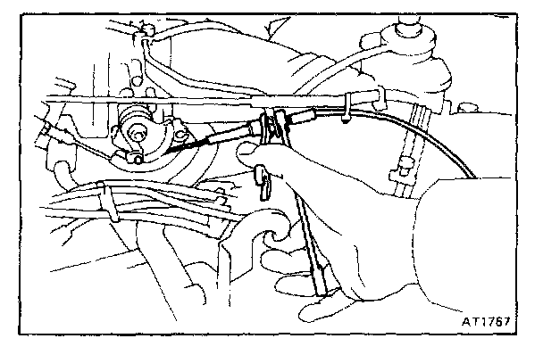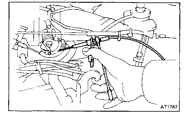 4. PULL THROTTLE CABLE OUT OF TRANSMISSION CASE