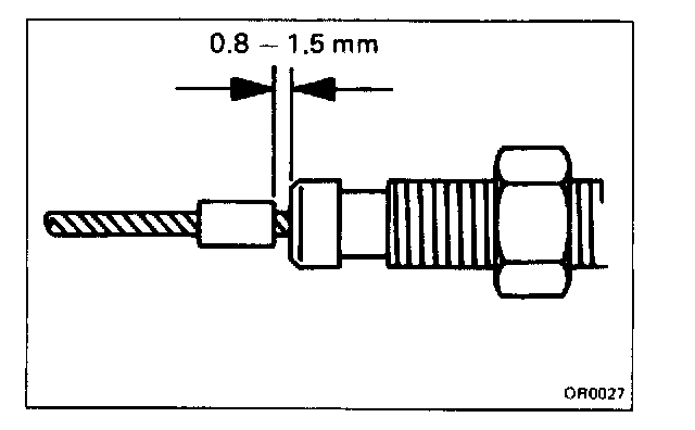 c. Stake the stopper 0.8 - 1.5 mm (0.031 - 0.059 in.) from the surface of outer cable as shown.