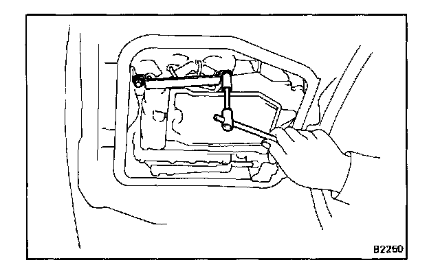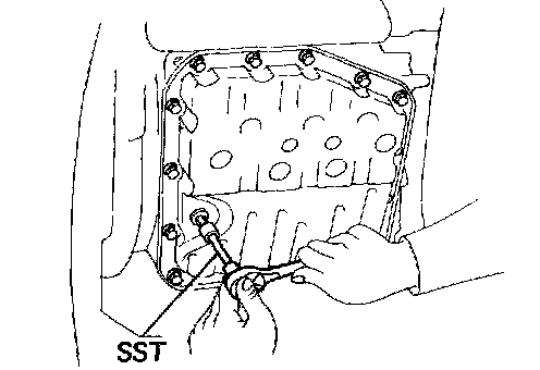 Remove the drain plug with SST and drain the fluid into a suitable container.