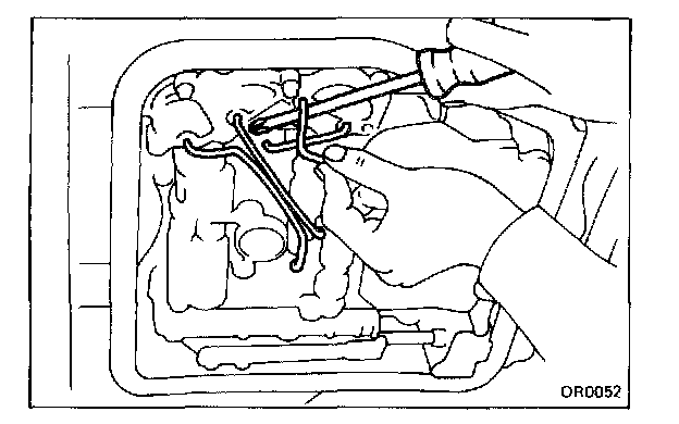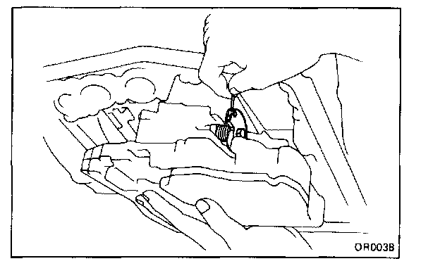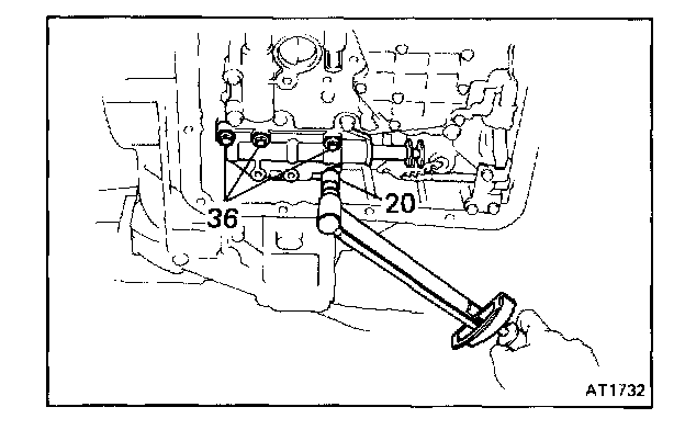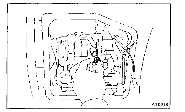 b. Check that the manual valve lever is in contact with the center of the roller at the tip of the detent spring.