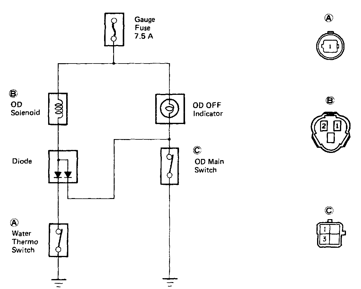 f. Confirm that operation sounds of the solenoid can be heard if the OD main switch is repeatedly turn on and off.