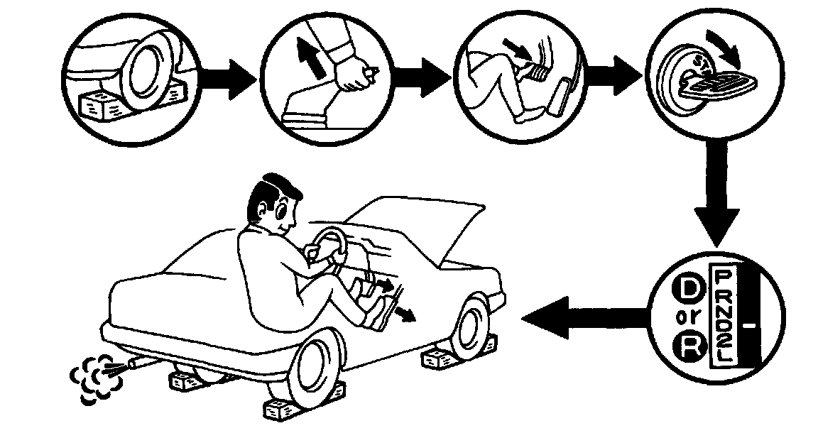 d. Step down strongly on the brake pedal with your left foot.