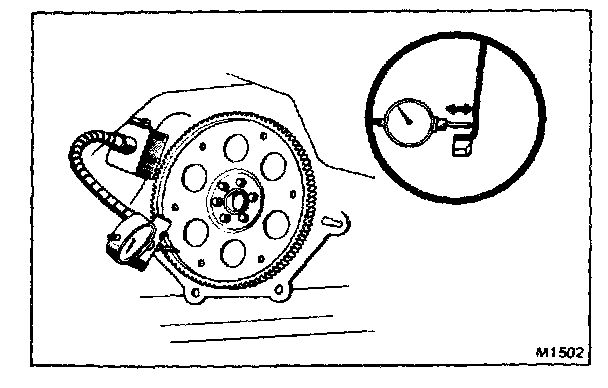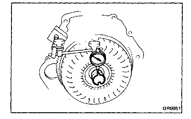 a. Temporarily mount the torque converter to the drive plate. Set up a dial indicator.