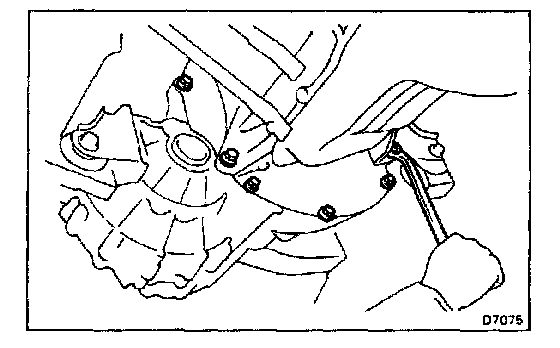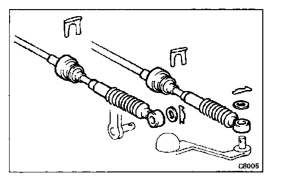 b. Pull the steering knuckle toward the outside and remove the drive shaft.