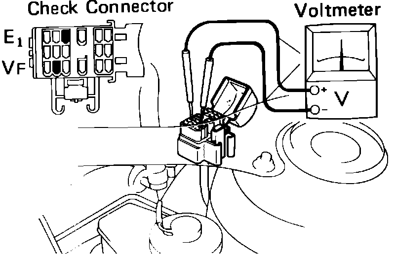 1. Run engine until it reaches normal operating temperature, then connect voltmeter to EFI service connector as shown in Fig 3.
