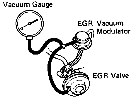 Using a 3-way connector, connect a vacuum gauge to the hose between the EGR valve and vacuum pipe.