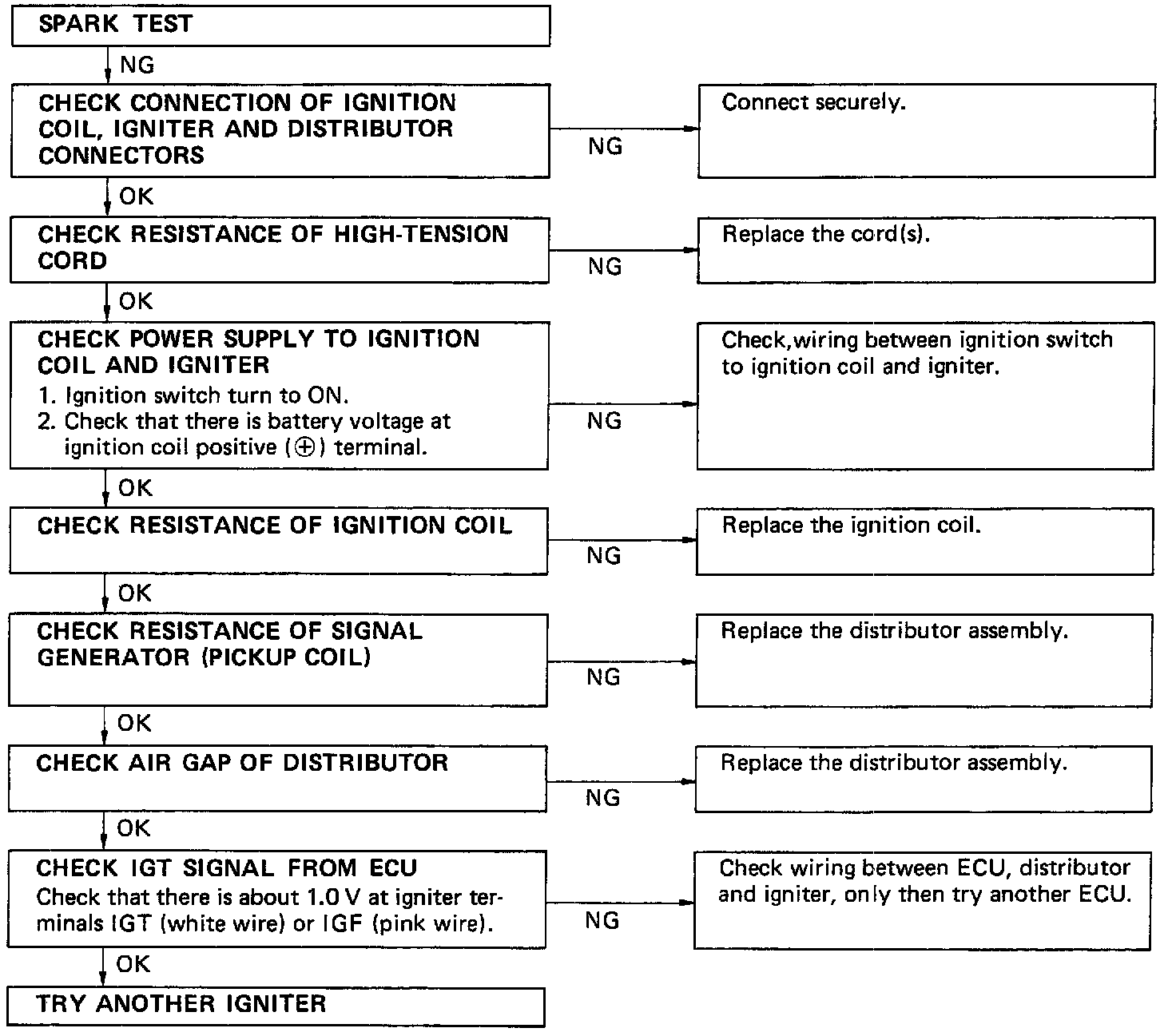 If the spark does not occurs, perform the test as shown in flow chart.