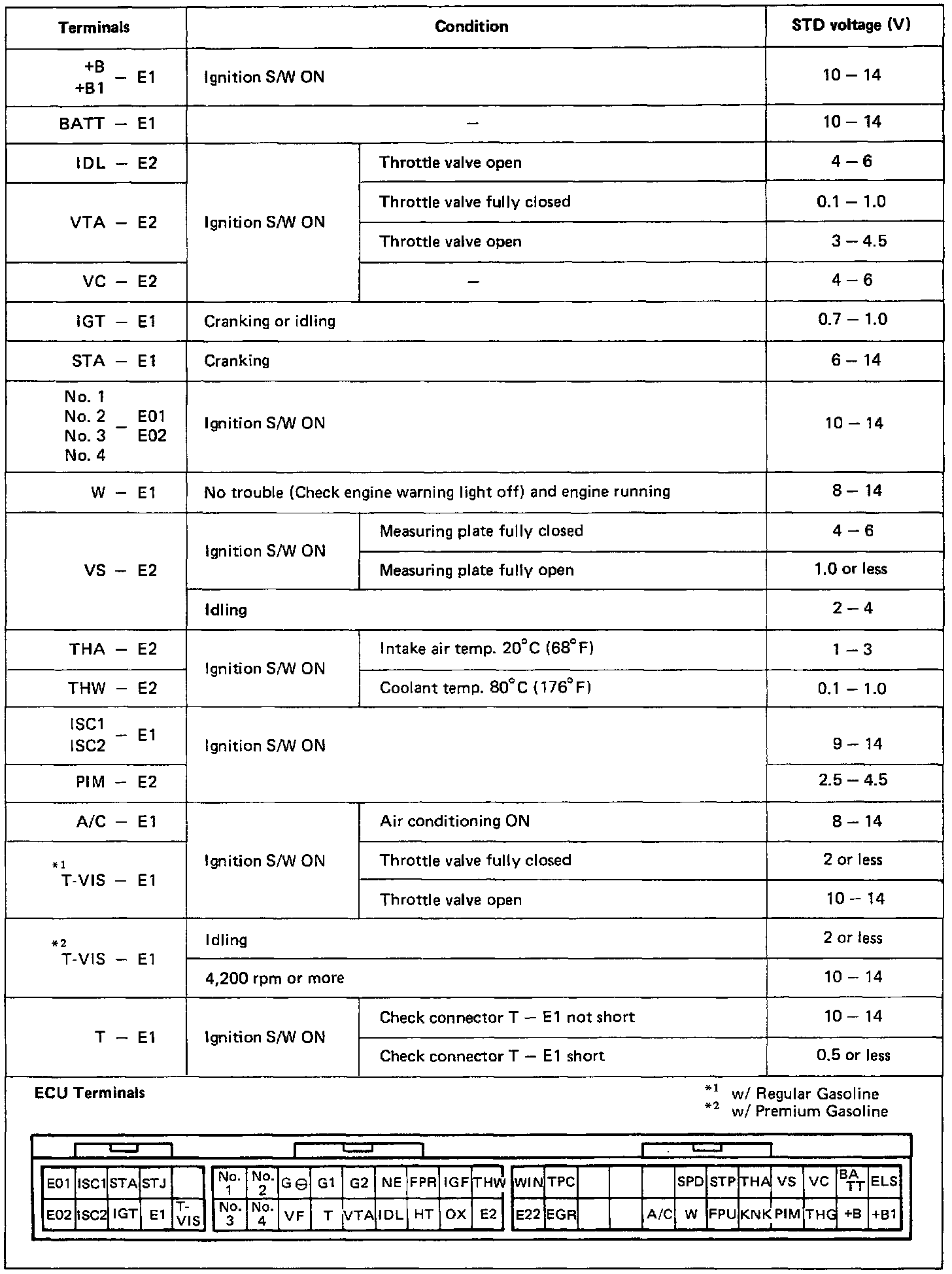 NOTE: The EFI circuit can be checked by measuring the resistance and voltage at the wiring connectors of the ECU.