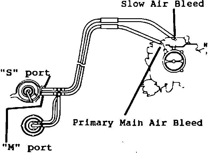 3) From EBCV "M" port (Brown A/T, Red M/T) to Primary Main Air Bleed port.