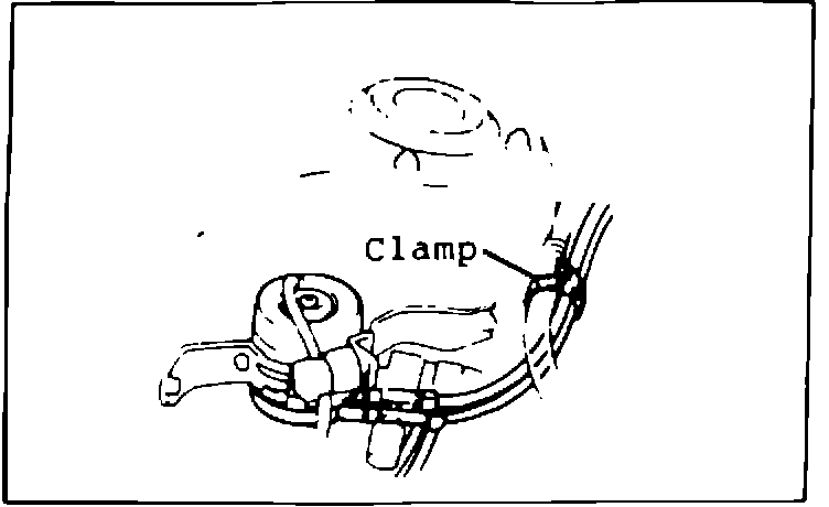 (e) Clamp the two hoses shown in the illustration.