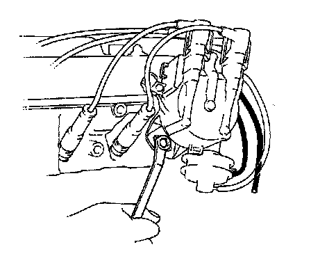 4. To adjust, loosen the distributor hold down bolt and slowly turn the distributor until the timing mark indicates 5° BTDC.