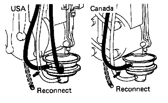 6. Reconnect the hose to the vacuum advancer sub-diaphragm as shown and make sure the timing advances to approx. 13° BTDC.