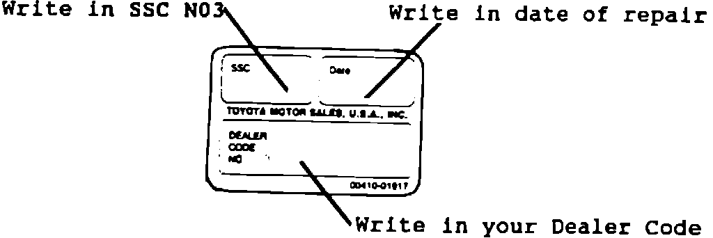 1. After completing replacement of the EBCV and before returning the vehicle to the owner, a SSC completion label that is enclosed in the owner's letter must be affixed to the firewall, make sure that the surface is clean and dry to ensure proper adhesion of the label.