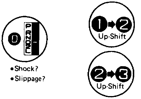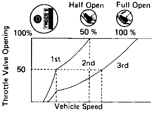 A. At each of the above throttle openings, check to see that 1 -> 2 and 2 -> 3 take place and also that the shift points conform to those shown on the automatic shift diagram.