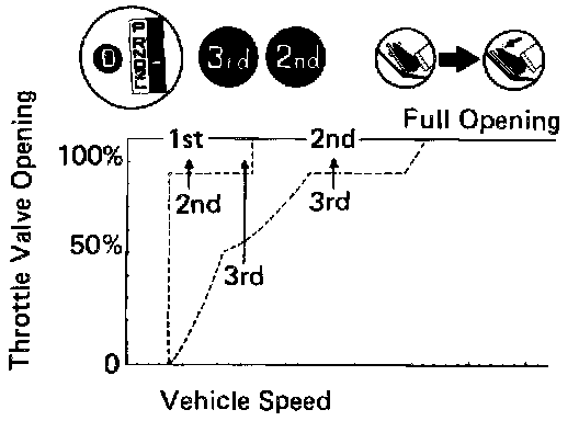 G. While running in the D range, release your foot from the accelerator pedal and shift into L range. Then check to see if 3 -> 2 and 2 -> 1 down-shift points conform to those indicated on the automatic shift diagram.