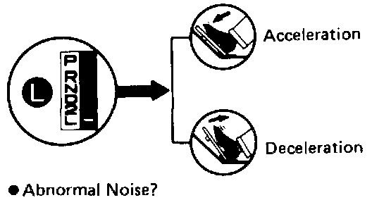 D. Check for abnormal noise at acceleration and deceleration, and for shock at up-shift and down-shift.
