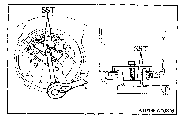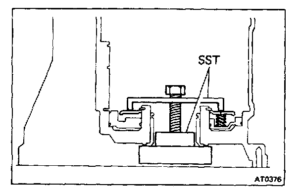 Gradually tighten the bolt to compress the springs, being careful not to damage the transmission case with SST.