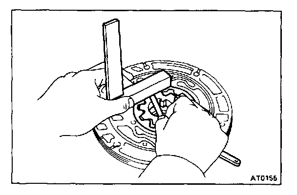 Push the driven gear to one side of the body. Using a feeler gauge, measure the clearance.