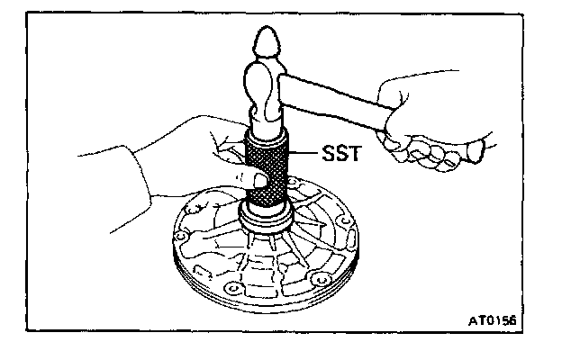 b. Using SST and a hammer, install a new oil seal. The seal end should be flush with the outer edge of the pump body.