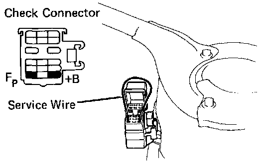 b. Using a service wire, short terminals +B and Fp of a the check connector.