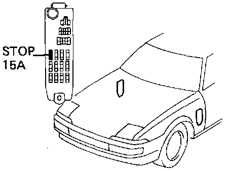 HOW TO CLEAR DIAGNOSTIC TROUBLE CODES WITHOUT A SCAN TOOL1. After repair of the trouble area, the diagnosis code retained in memory by the ECU must be cancelled out by removing the fuse: "STOP" (15 A), located behind driver's kick panel, for 10 seconds or more, depending on ambient temperature (the lower the temperature, the longer the fuse must be left out) with the ignition switch off.