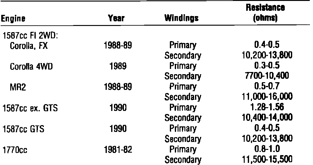 Fig. 10 Ignition Coil Specifications: