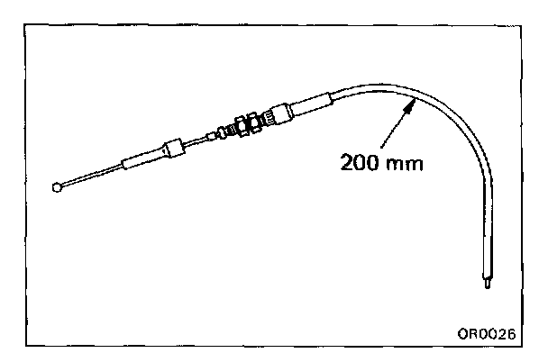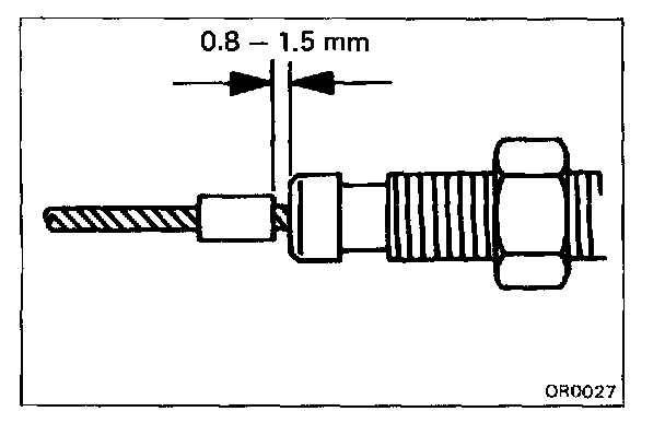 c. Stake the stopper, 0.8 - 1.5 mm (0.031 - 0.059 in.) from the end of outer cable.
