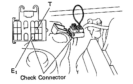 1. Connect timing light to engine.2. Short terminals T and E1 of the service connector with a suitable service wire as shown.