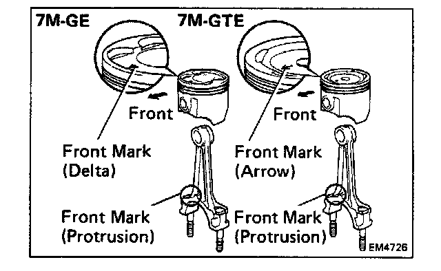 (d) Align the front marks of the piston and the connecting rod, and push in the piston pin with your thumb.