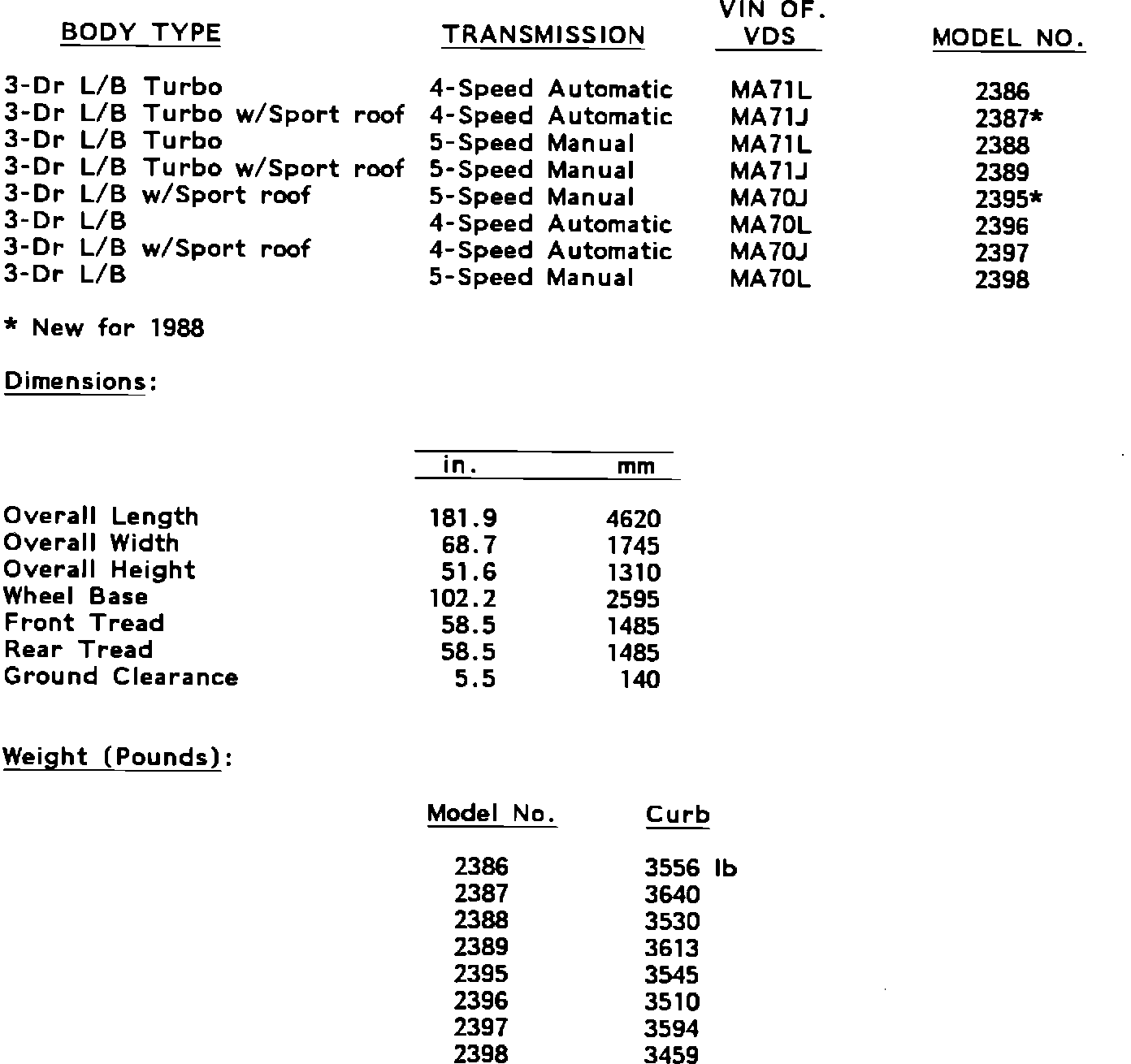 Vehicle Specifications